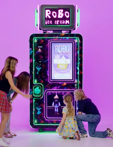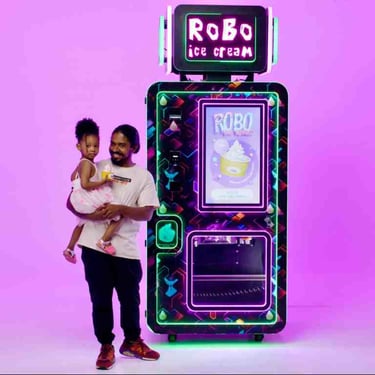The Robo Ice Cream machine introduces a cutting-edge twist to traditional treats. Its state-of-the-art technology dispenses ice cream with precision, offering an innovative and engaging way for customers to enjoy their favorite flavors.