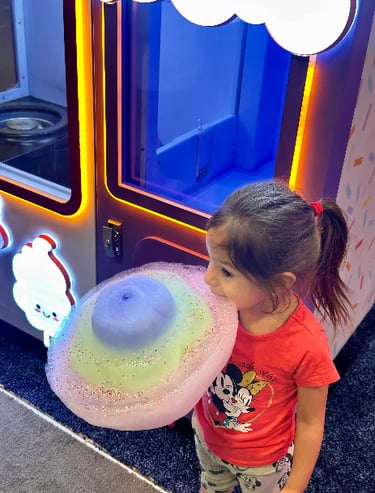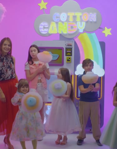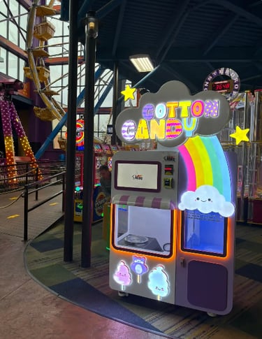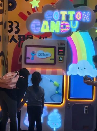 The Cotton Candy isn't just a machine, it's a spectacle. Its robotic arm crafts cotton candy with flair, turning each serving into a mesmerizing performance of swirling colors and shapes